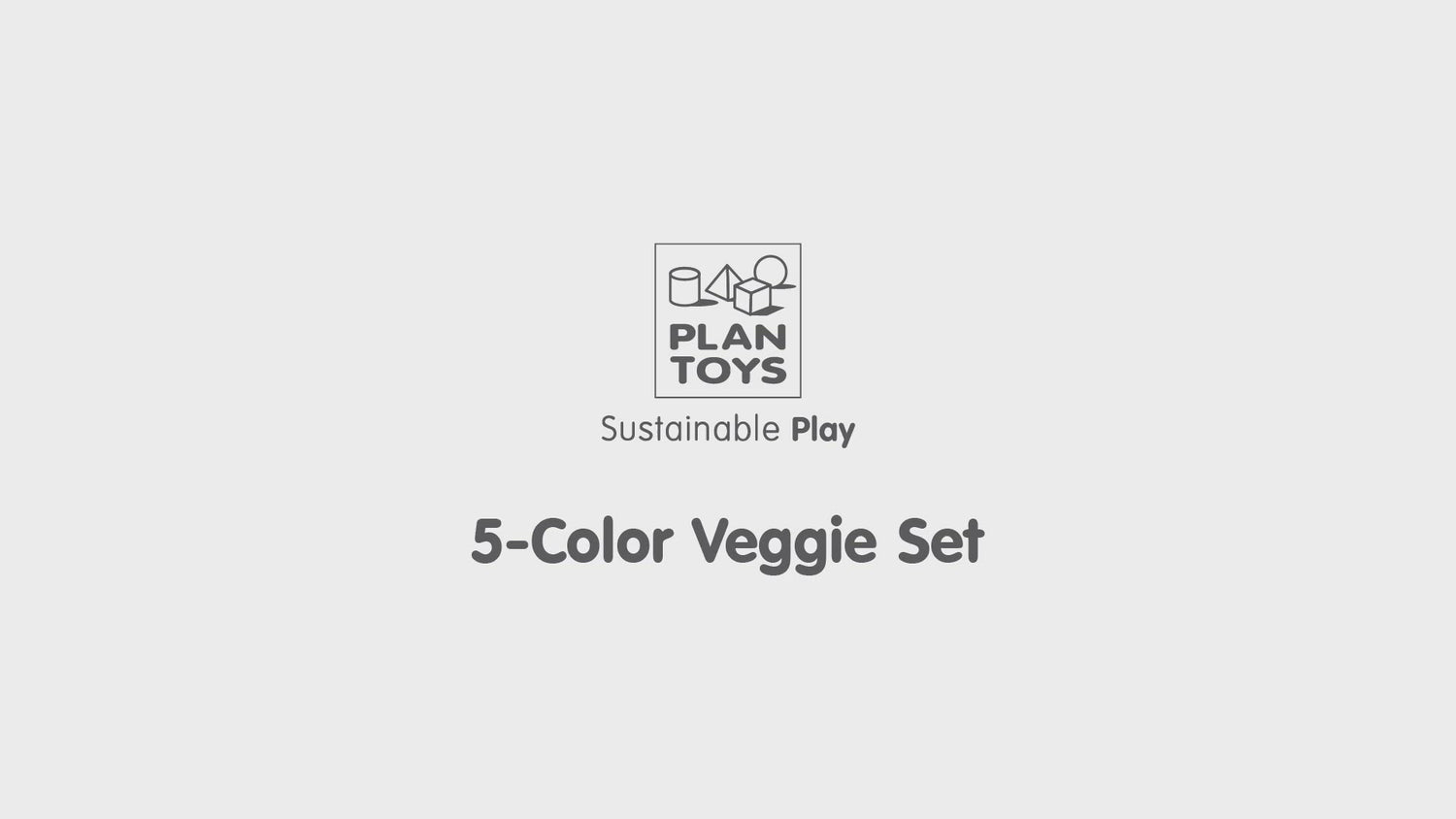 The 5-Color Veggie Set comes with a knife and 5 sliceable veggies: broccoli, bell pepper, pumpkin, garlic, and red cabbage. Children can learn about benefits of each colored vegetable. Tactile details offer realistic play.