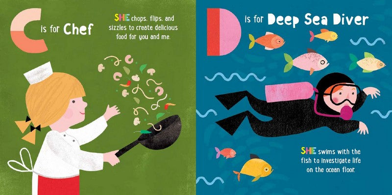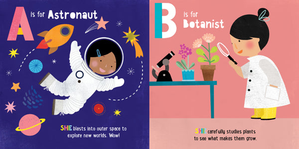 ABC What Can She Be? presents a world of possibilities—from astronaut to zoologist and everything in between—for all little girls with big dreams.