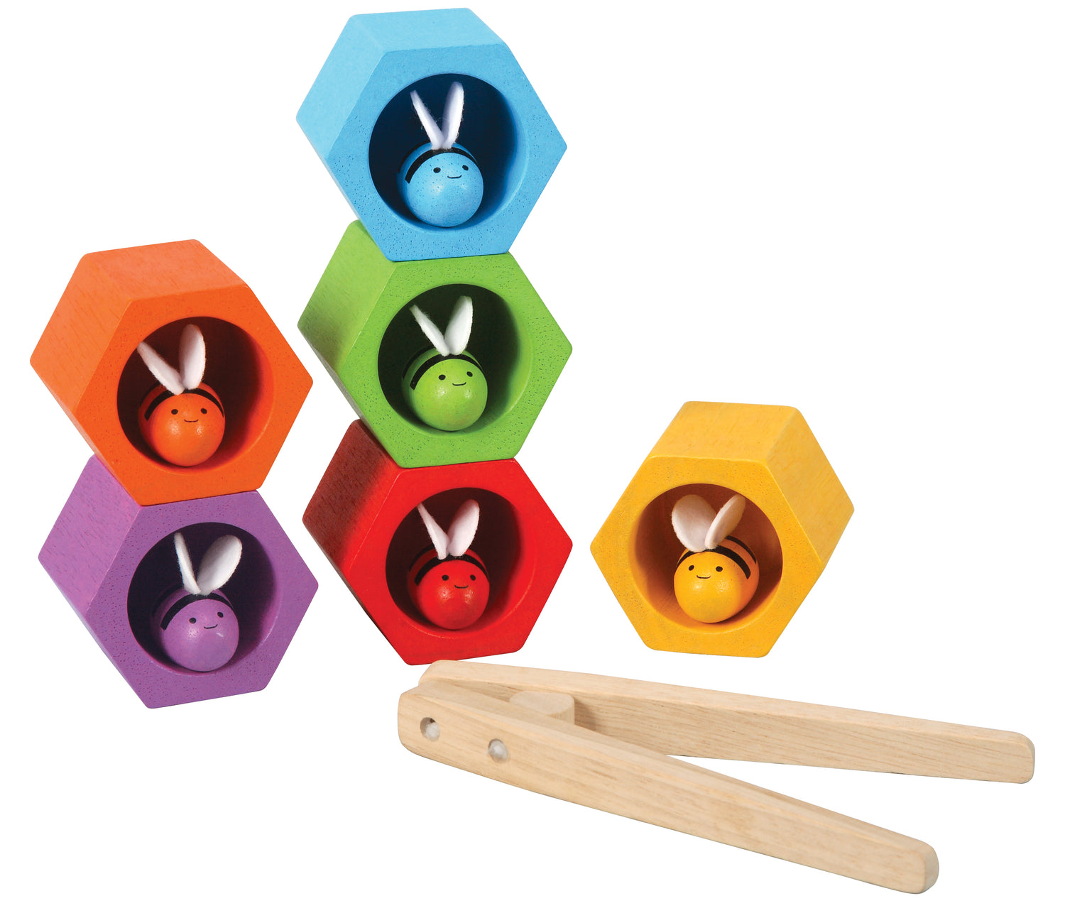 EDUCATIONAL PLAY: Separate each bee from its hive and invite children to use the pincers to bring each bee back to its correct home! The hives can also be stacked and sorted.