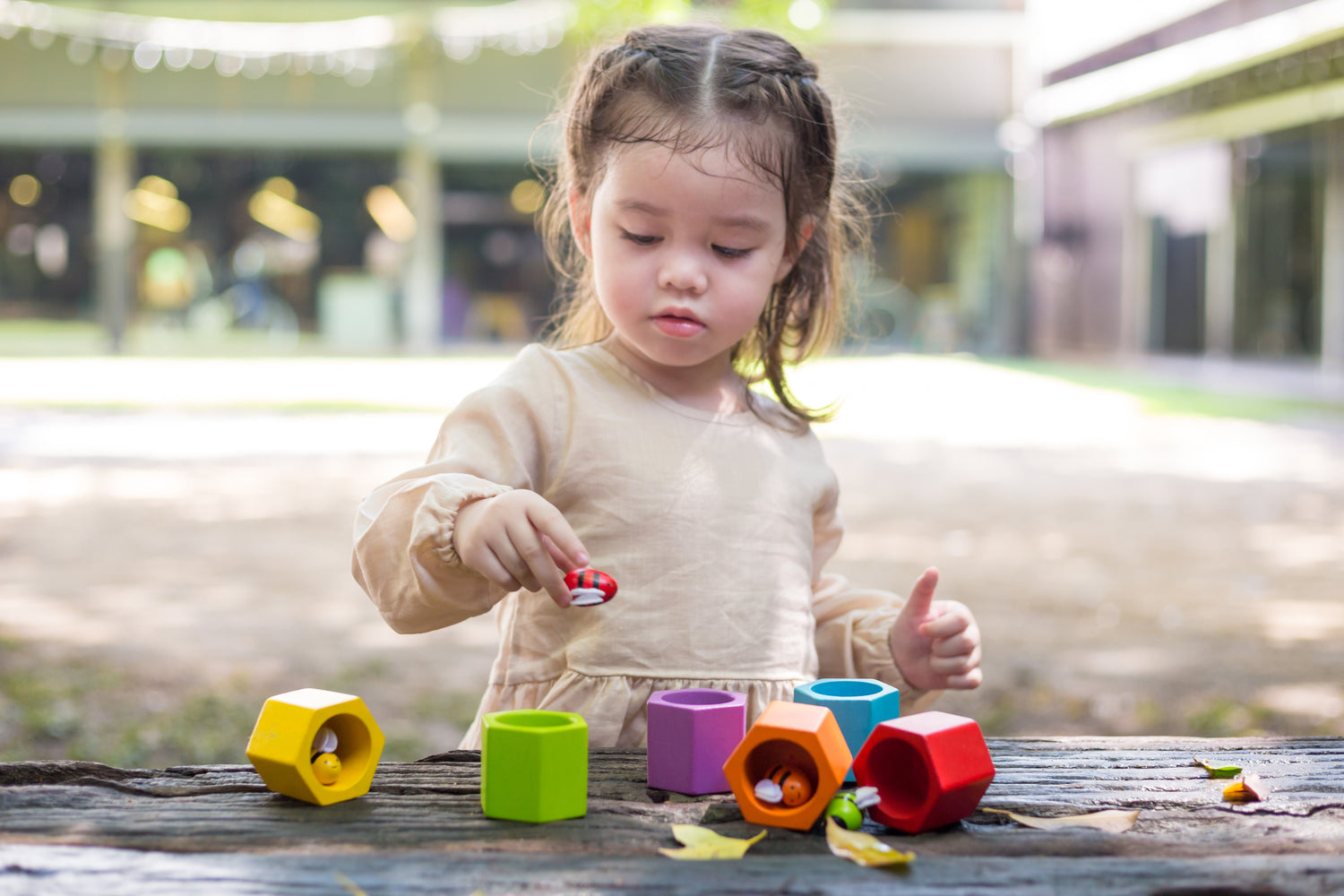 CLOSER TO NATURE: Bring children a little closer to the outdoors with the PlanToys Beehives. Six bees that vary in color (red, purple yellow orange green, and blue) match with a hive for a realistic beehive environment! Teach little ones about bees - their habitat diet way of life purpose etc.
