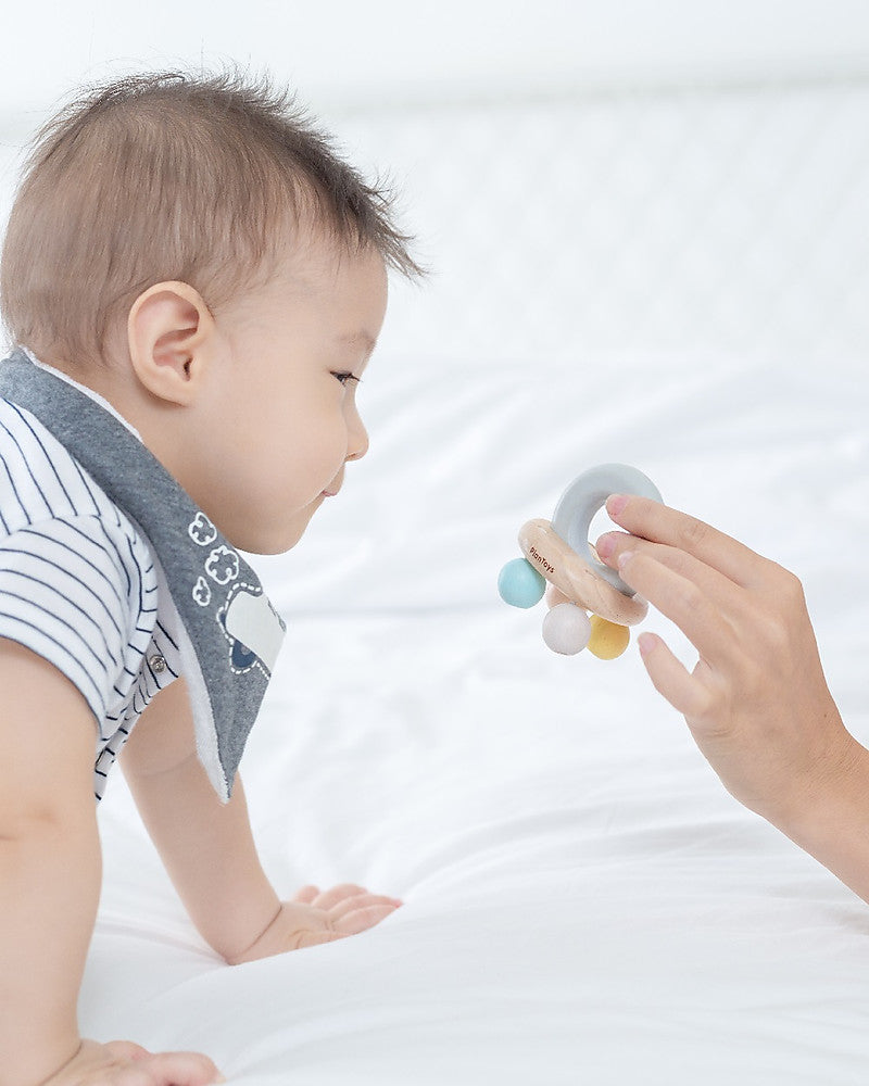 The Bell Rattle comes with an easy grasp handle and wooden beads which help stimulate babies to explore their auditory skills.