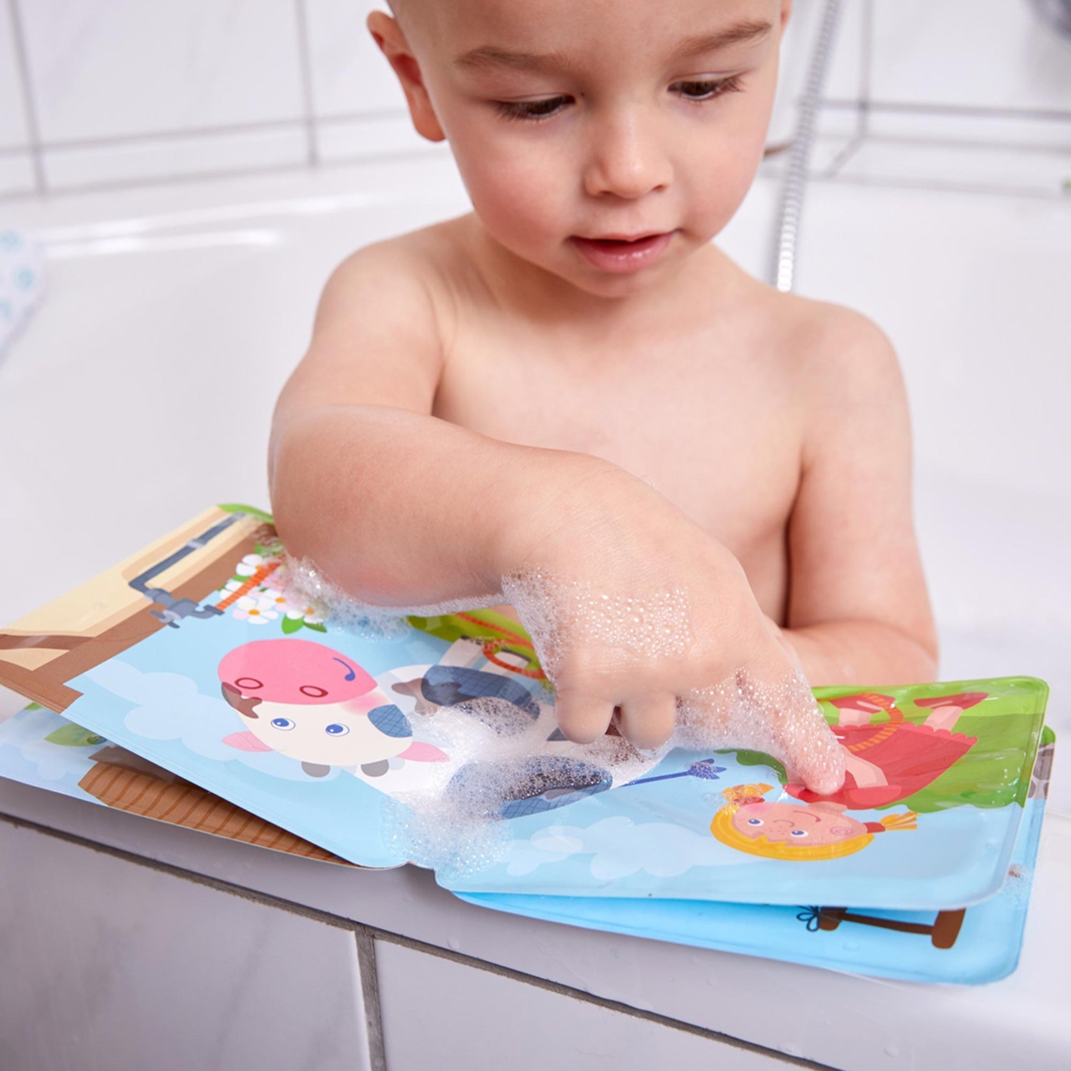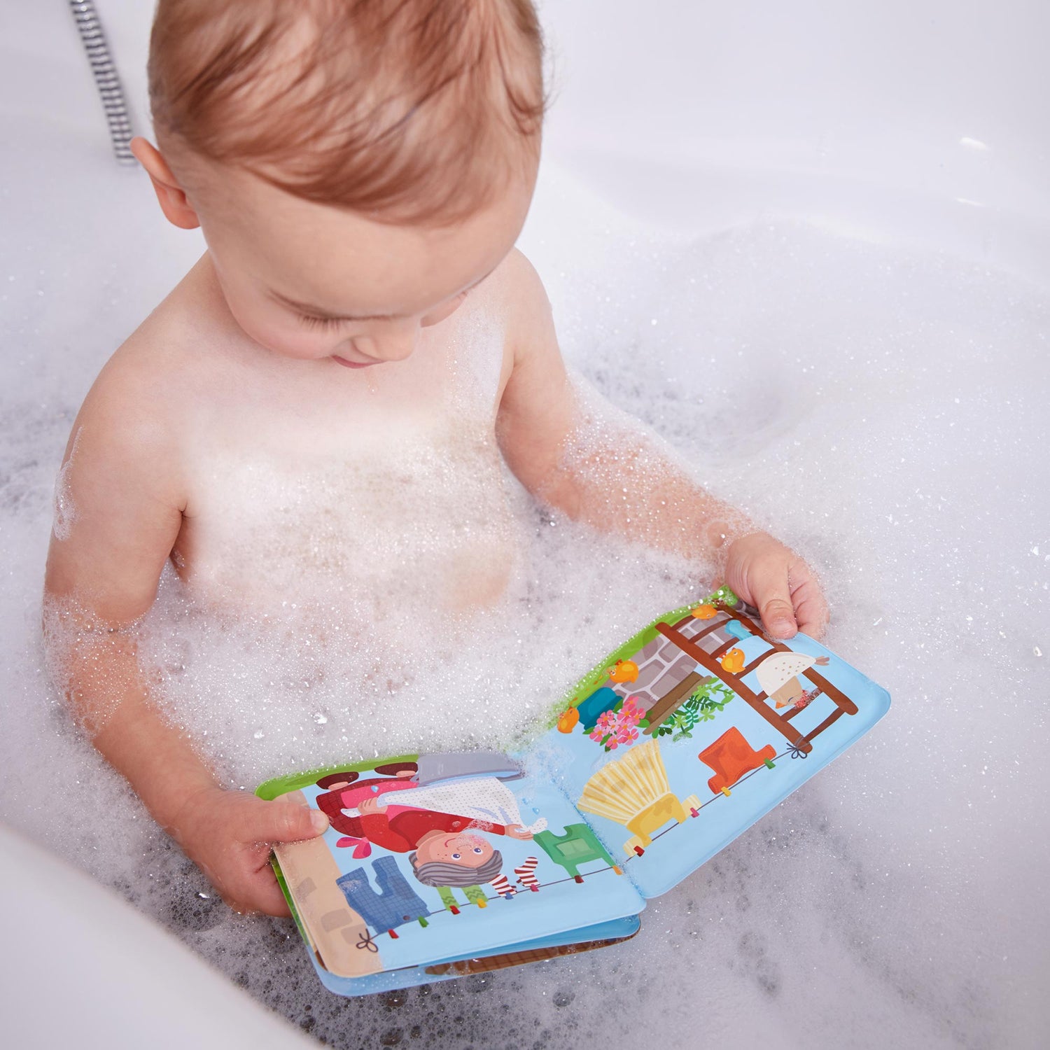 Today is a big washing day on the farm. Not only is grandma washing all the clothes, she is also scrubbing the pig, the cow and the horse clean. When the pages come into contact with warm water, all the dirt disappears in no time. And in the end, everything is sparkling clean again!