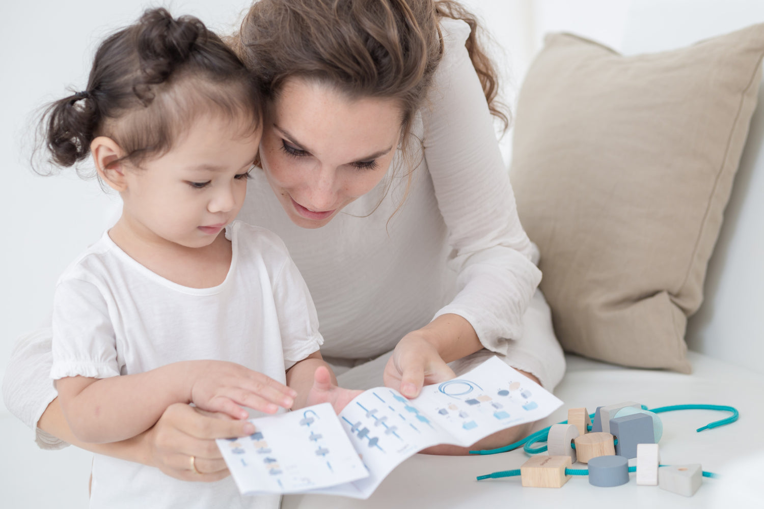 These Lacing Beads encourage children to develop fine motor skills, creativity, and concentration. It consists of 15 beads in 3 different geometric shapes and 2 laces. Children can create endless patterns from their imagination or follow our guideline.