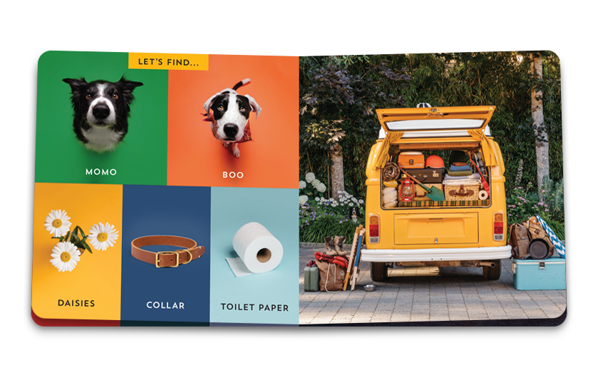 In this follow-up to the hit LET’S FIND MOMO!, young readers spend a day with Momo as he sets off on an adventure across the great outdoors. From the mountains to the beach to a night spent under the stars, babies, toddlers, and parents will delight in finding Momo in unexpected and beautiful locations. Plus, Momo has an adorable new puppy companion: Boo!