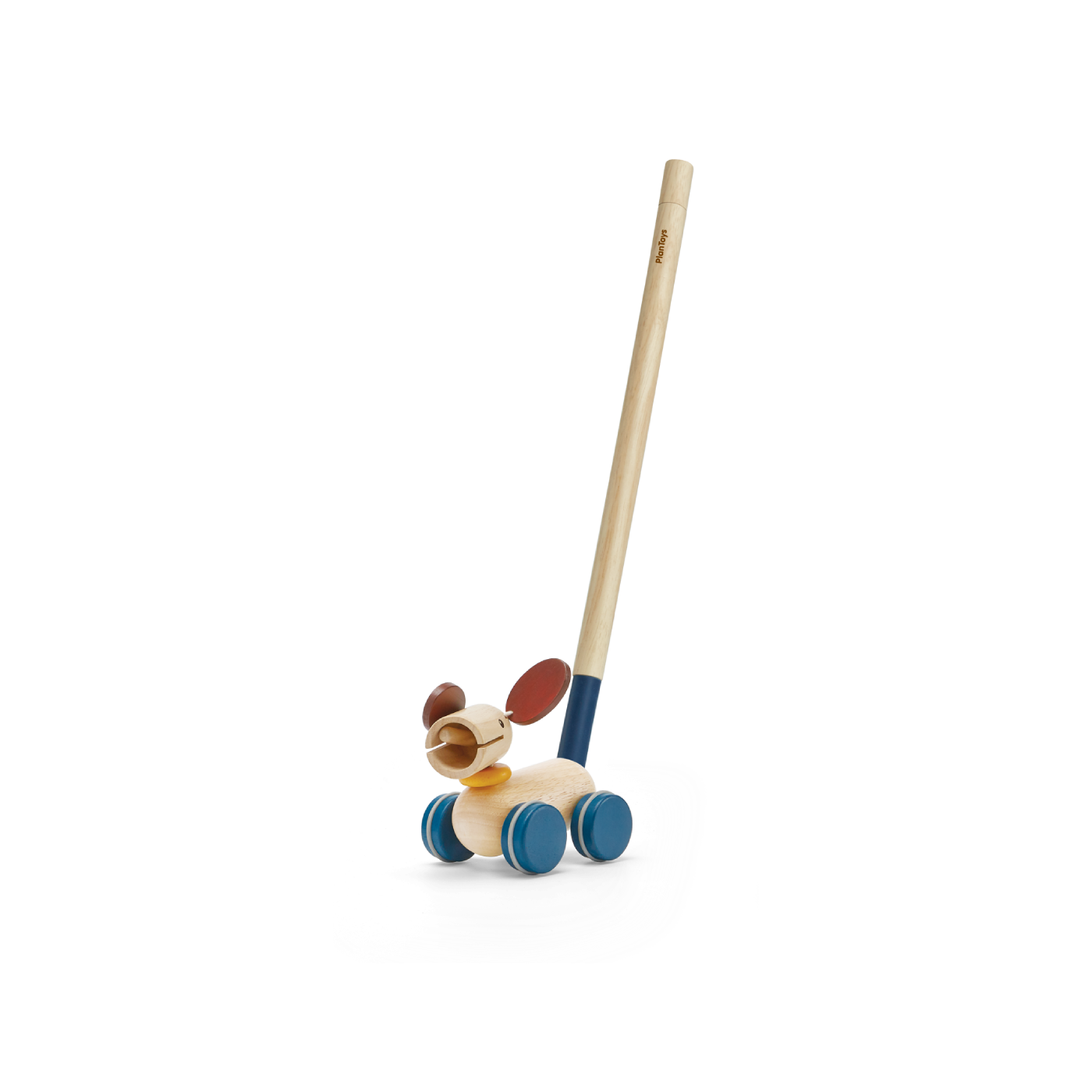 This playful puppy is the perfect toddler companion! It comes with flexible functions - including a tilting puppy face and click-clack sound while moving. Additionally, the wooden handle can easily be removed from the rubber joint for free play. Develop fine motor skills, improve balance and coordination through active play, and watch your little one become more comfortable on their own two feet!